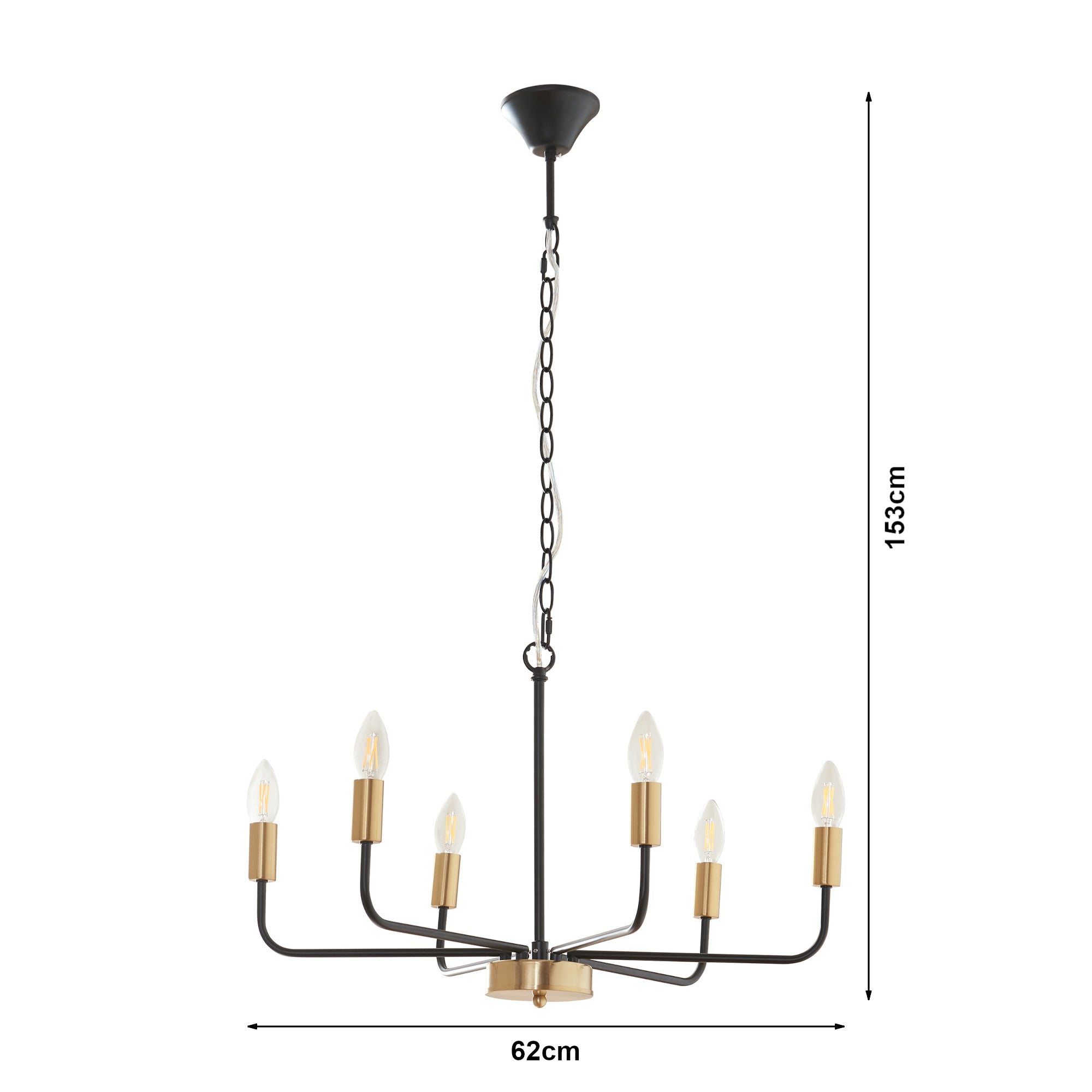 - Lampenfassung: 6 x E14, max. 40W (Lieferung ohne Leuchtmittel)