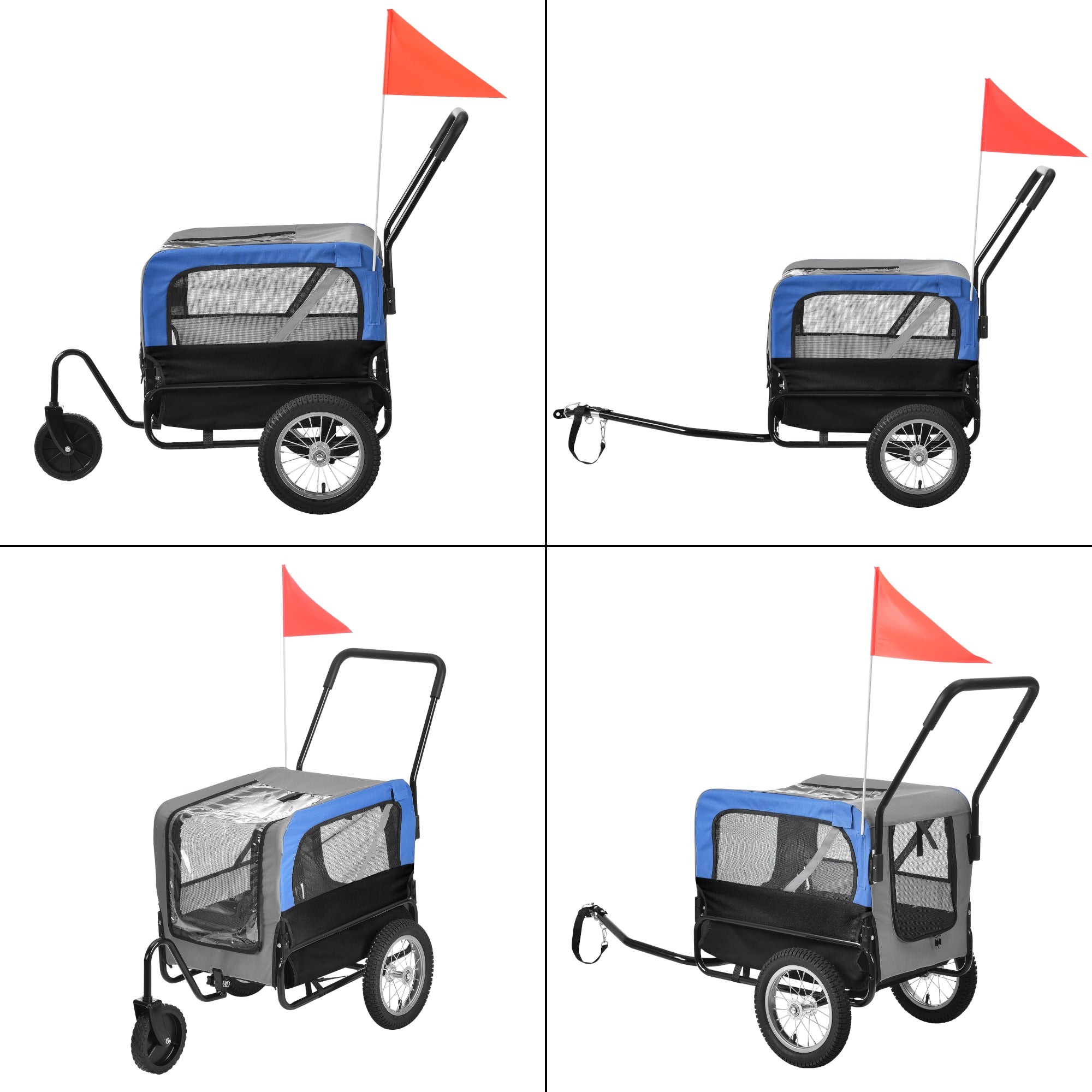 Der praktische Anhänger eignet sich ideal zum mitnehmen von kleinen Hunden oder dem transportieren von Gegenständen. Je nach Bedarf lässt sich die, im Lieferumfang enthaltene, Anhängerkupplung fürs Fahrrad montieren oder das mitgelieferte Vorderrad, um den Anhänger wie einen Buggy zu schieben.