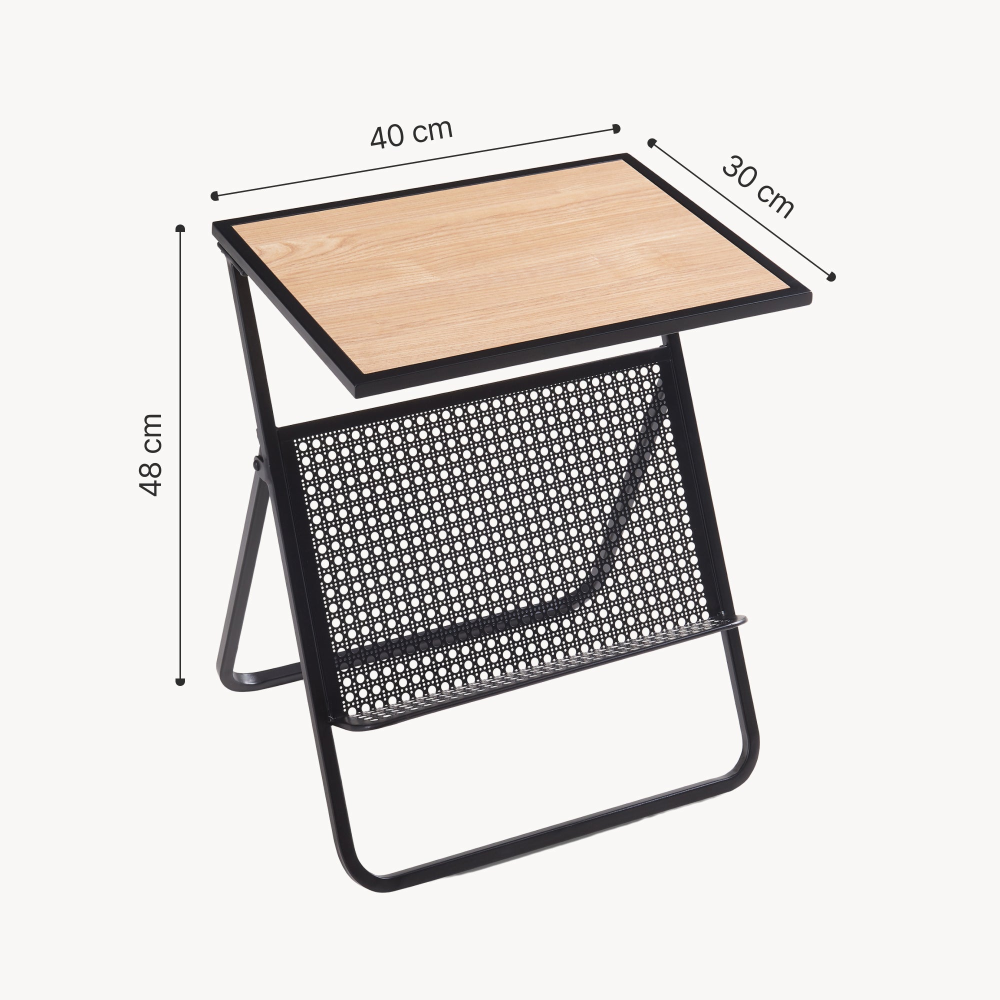 Dieser Beistelltisch mit Zeitungsablage ist die perfekte Ergänzung für Ihr Zuhause und bringt Ordnung sowie Komfort in Ihren Alltag. Dank seiner zeitlosen, eleganten Ausstrahlung bereichert er jeden Wohnraum, ob Wohnzimmer, Schlafzimmer oder Homeoffice.