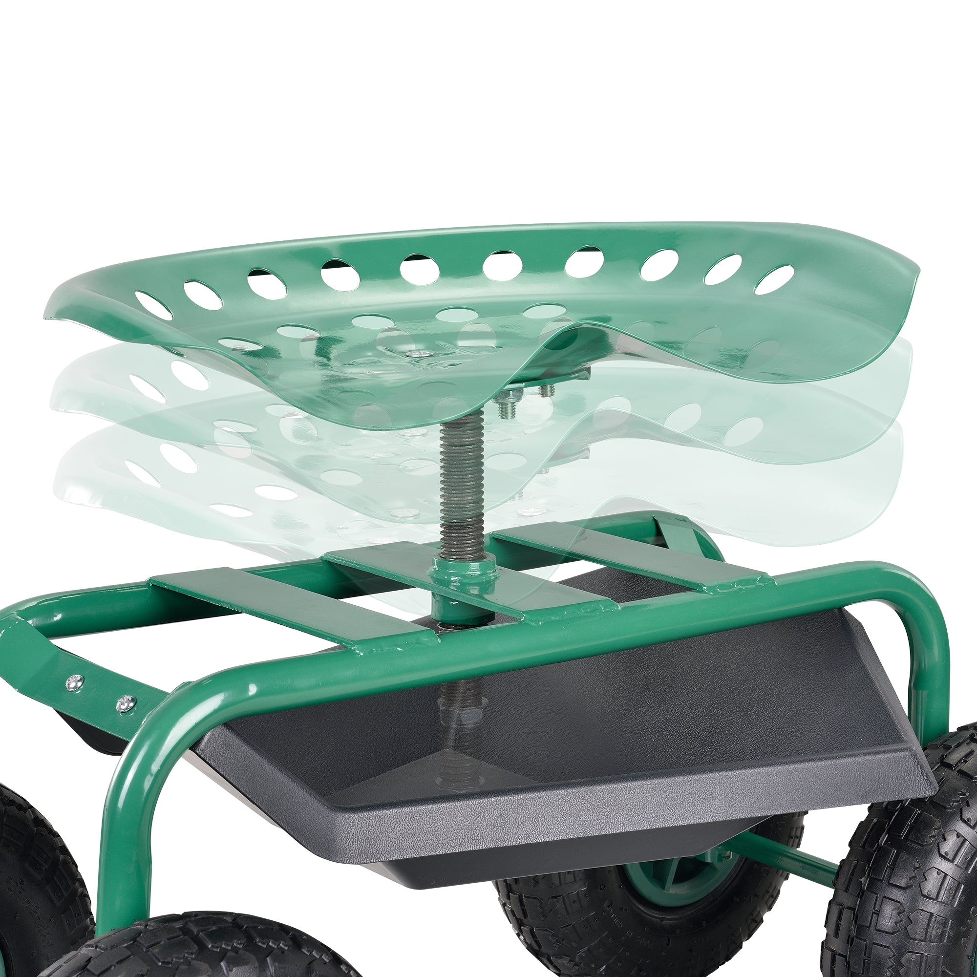 Der fahrbare Gartensitz ist eine praktische und ideale Lösung für Ihre Gartenarbeit. Anstrengende Aufgaben im Garten können nun im Sitzen erledigt werden, durch einfaches hin- und herrollen. Der Sitz ist höhenverstellbar und kann individuell angepasst werden. Desweiteren verfügt er über eine Ablagefläche für Ihre Arbeitsgeräte. Das Stahlgestell und die breiten Räder sorgen für Stabilität.