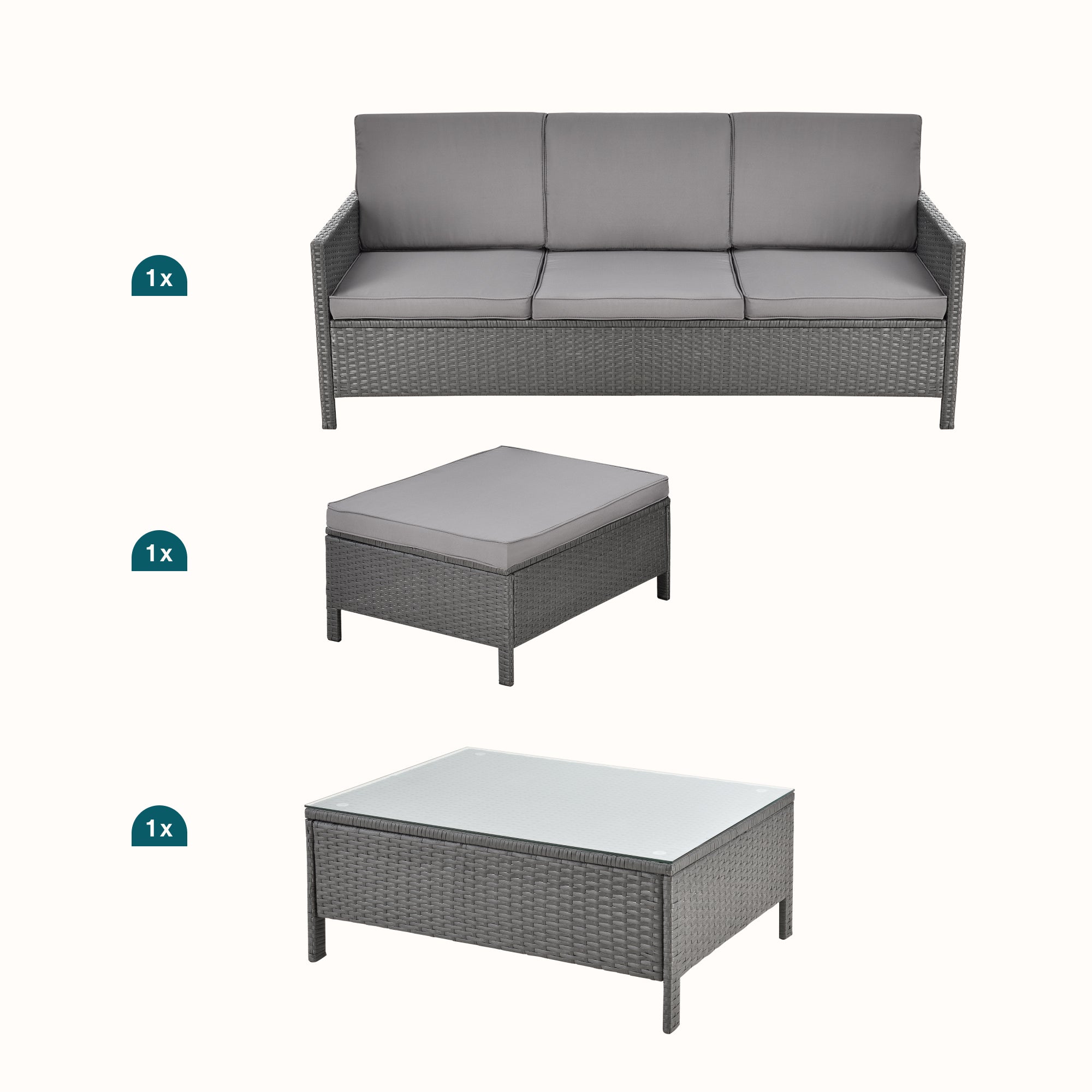 - 3-tlg. Loungeset bestehend aus Sofa, Hocker und Tisch