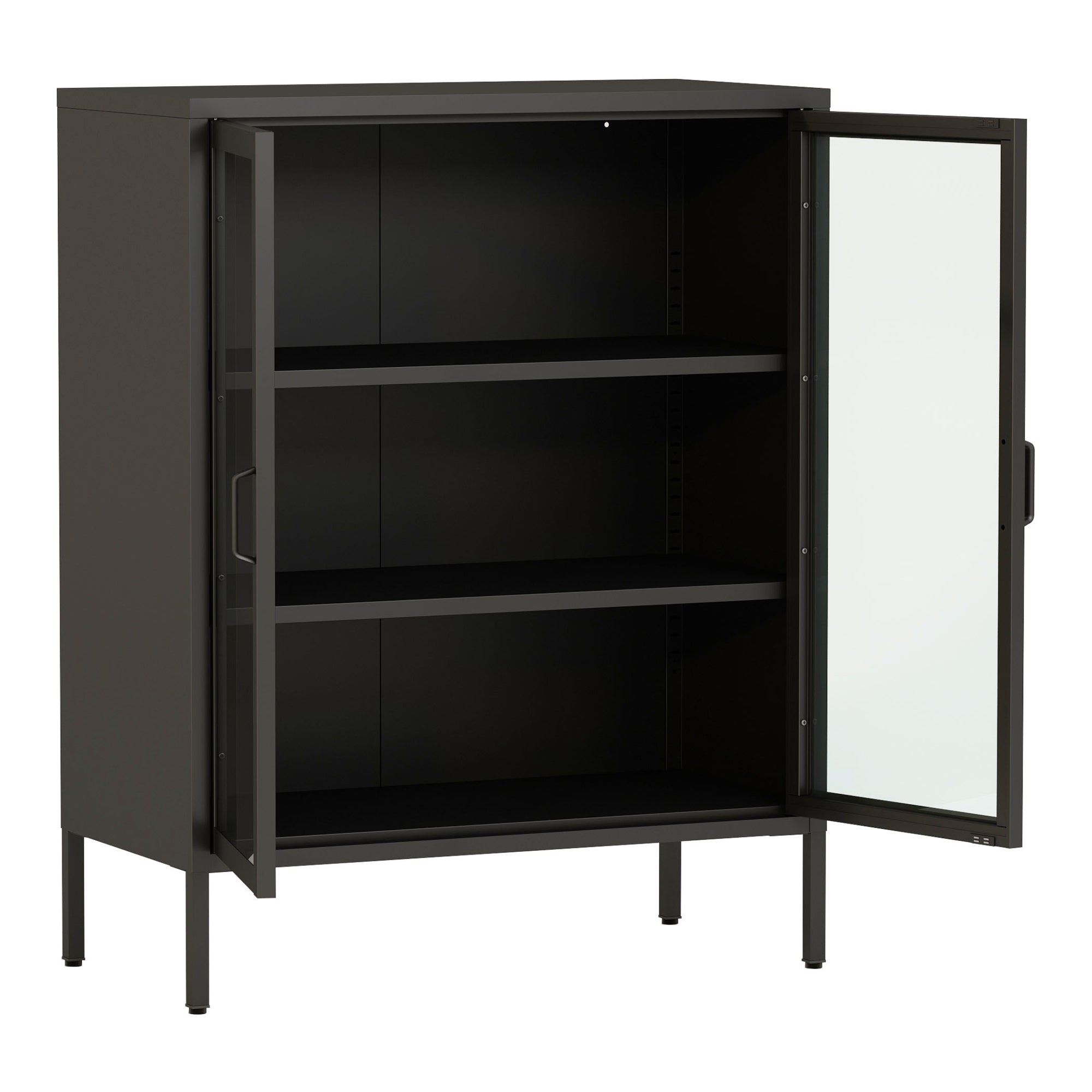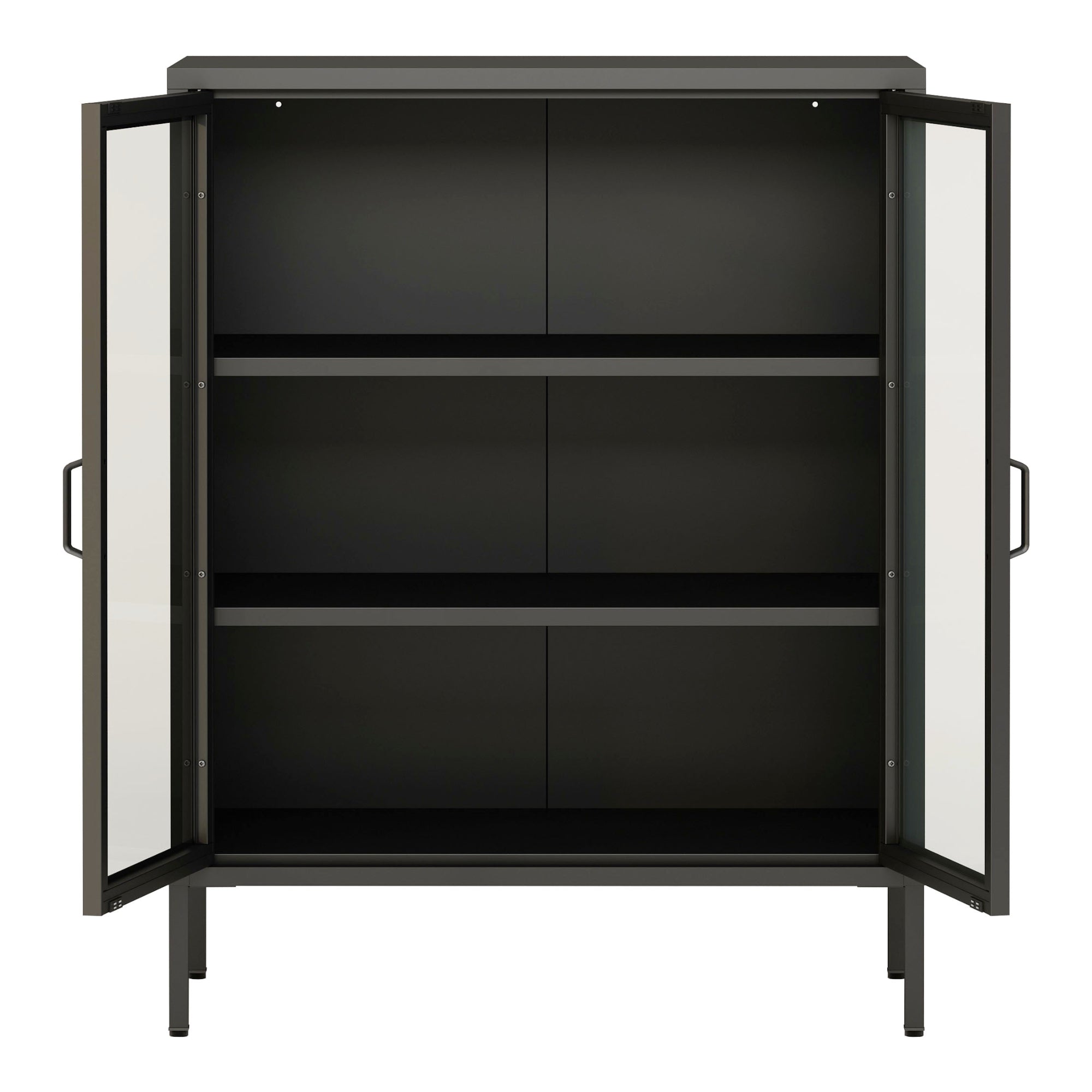 - Mit zwei transparenten Glastüren